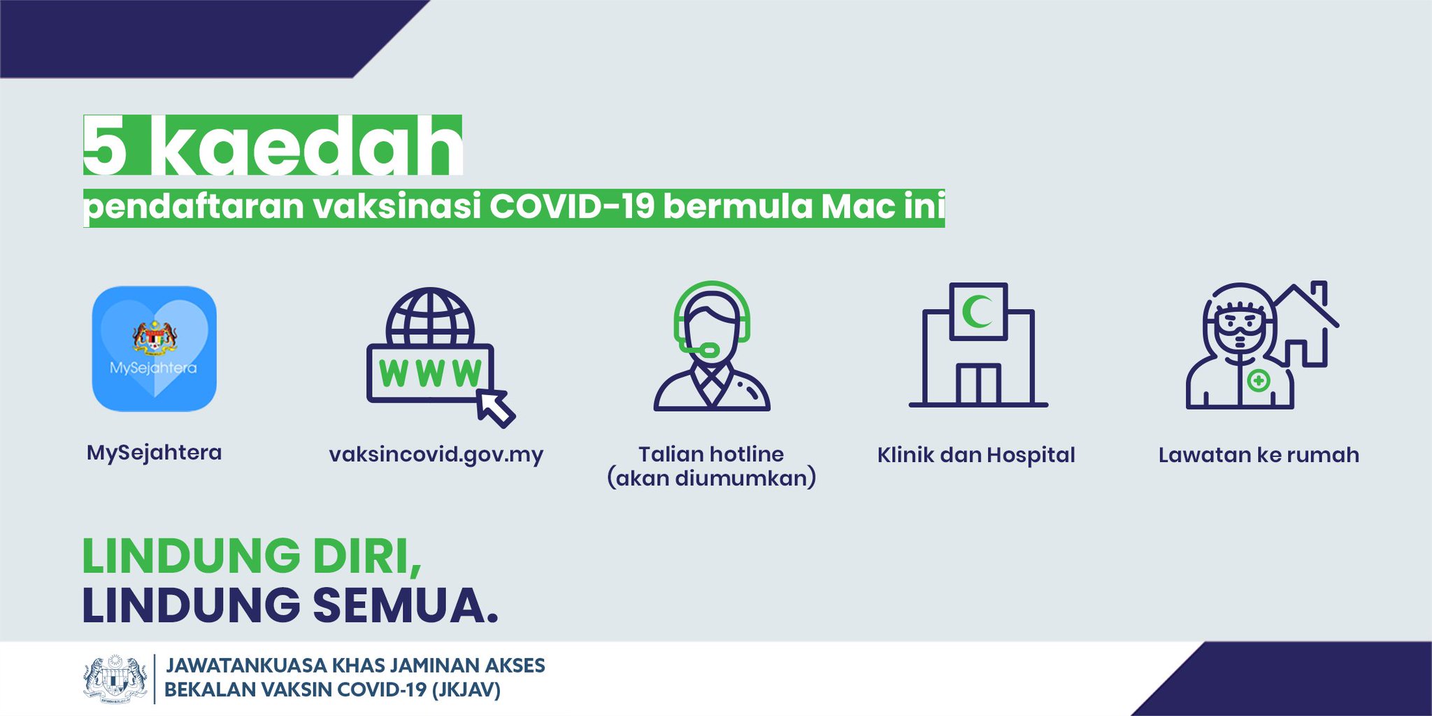Vaksin Covid 19 On Twitter Berikut Adalah 5 Kaedah Pendaftaran Vaksinasi Covid 19 Yang Boleh Dilakukan Bermula Mac 2021 Untuk Maklumat Lanjut Tentang Kaedah Kaedah Ini Layari Https T Co C6juco6dhl Lindungdirilindungsemua Https T Co