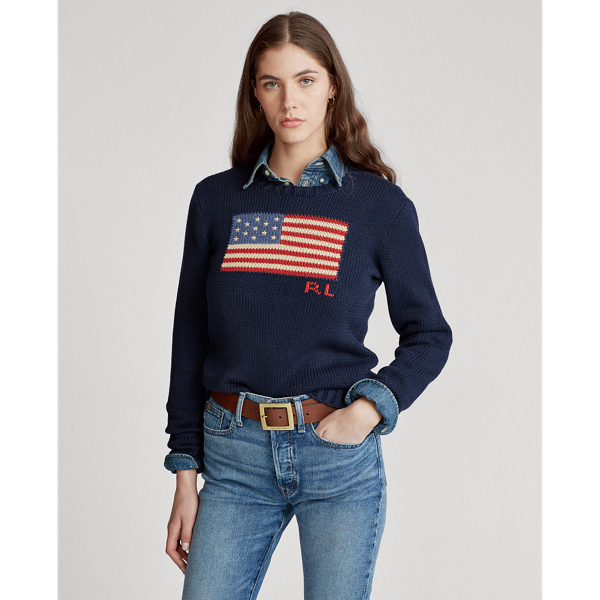 Women S Flag Cotton Crewneck Sweater Ralph Lauren