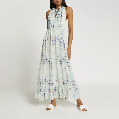 Asos Tall Dark Tie Dye Ruched Halter Beach Maxi Dress 43 Liked On Polyvore Featuring Dresses Multi Ray Maxi Dress Beach Maxi Dress Halter Top Maxi Dress